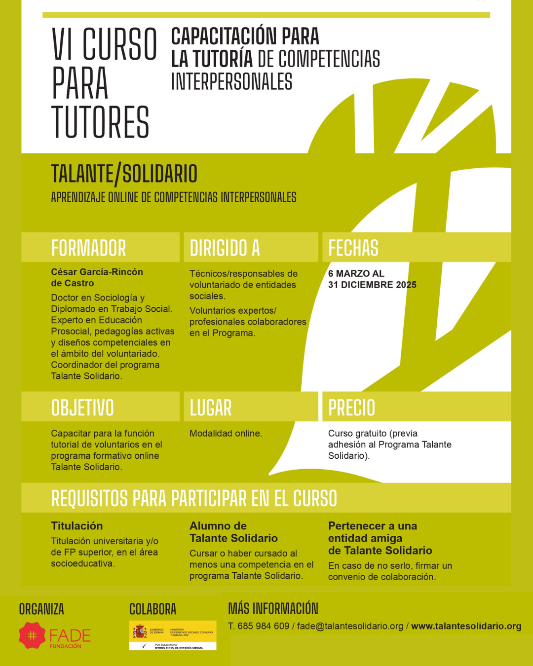 VI Curso de capacitación para la Tutoría de competencias interpersonales en Talante Solidario