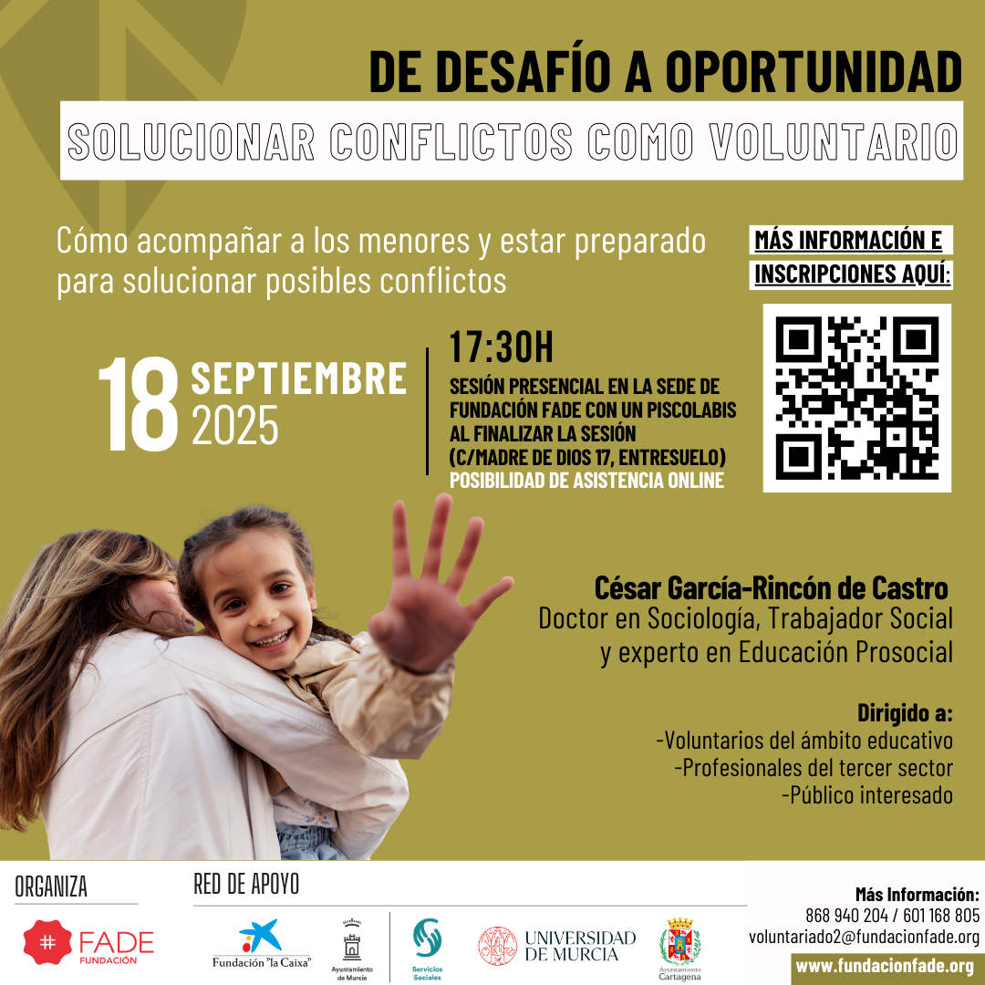 - Lugar: Sede de Fundación FADE (c/ Madre de Dios 17, entresuelo), con posibilidad de conexión online.