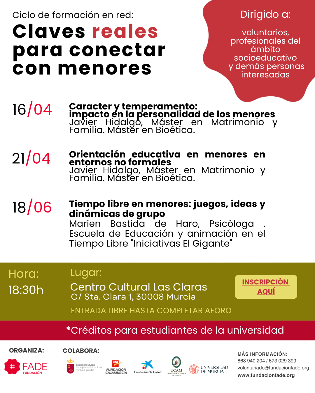 *Formación certificada por FADE. Y en caso de estudiantes de UMU serán horas de formación acumulables para obtener créditos de libre configuración.